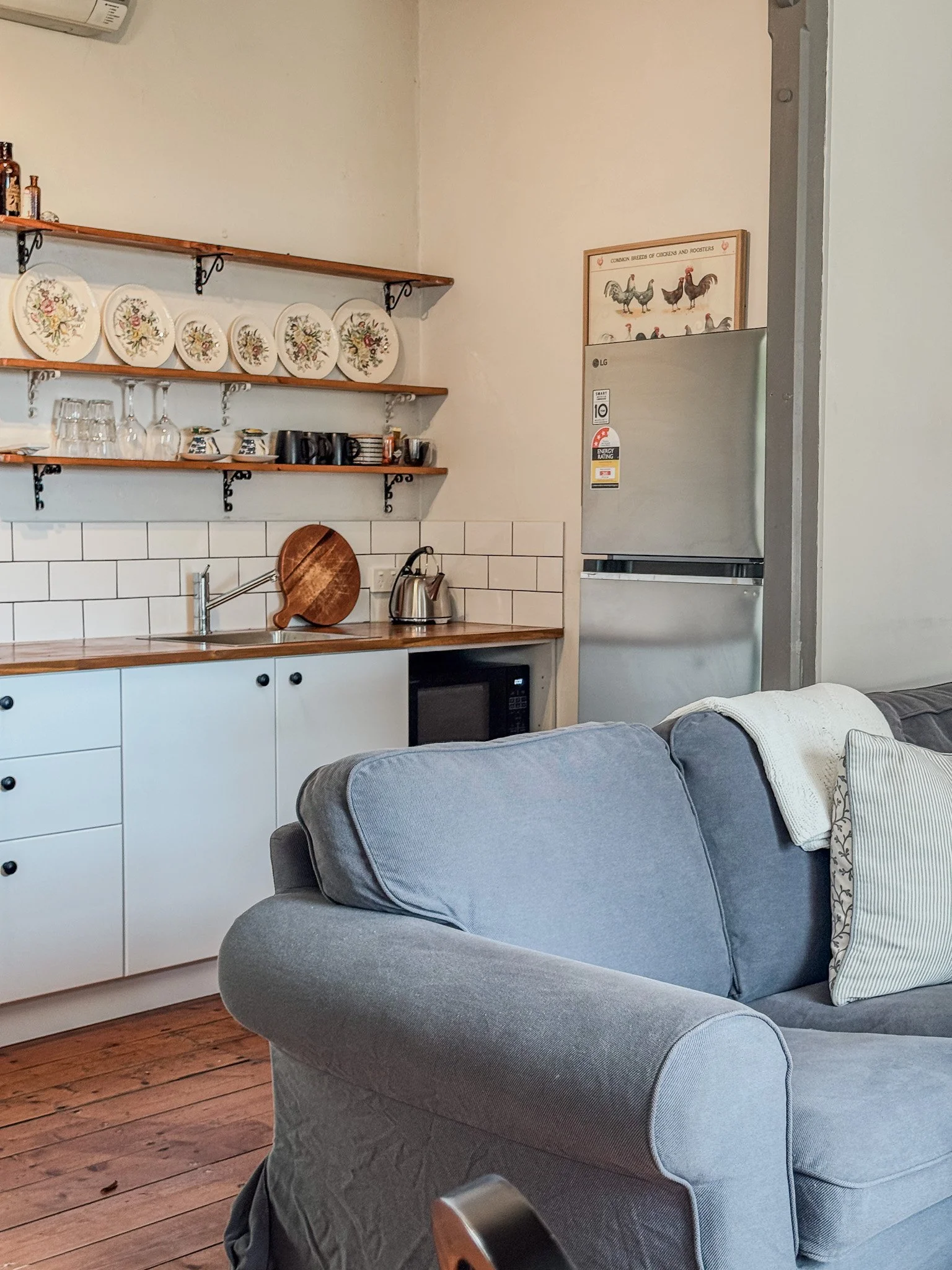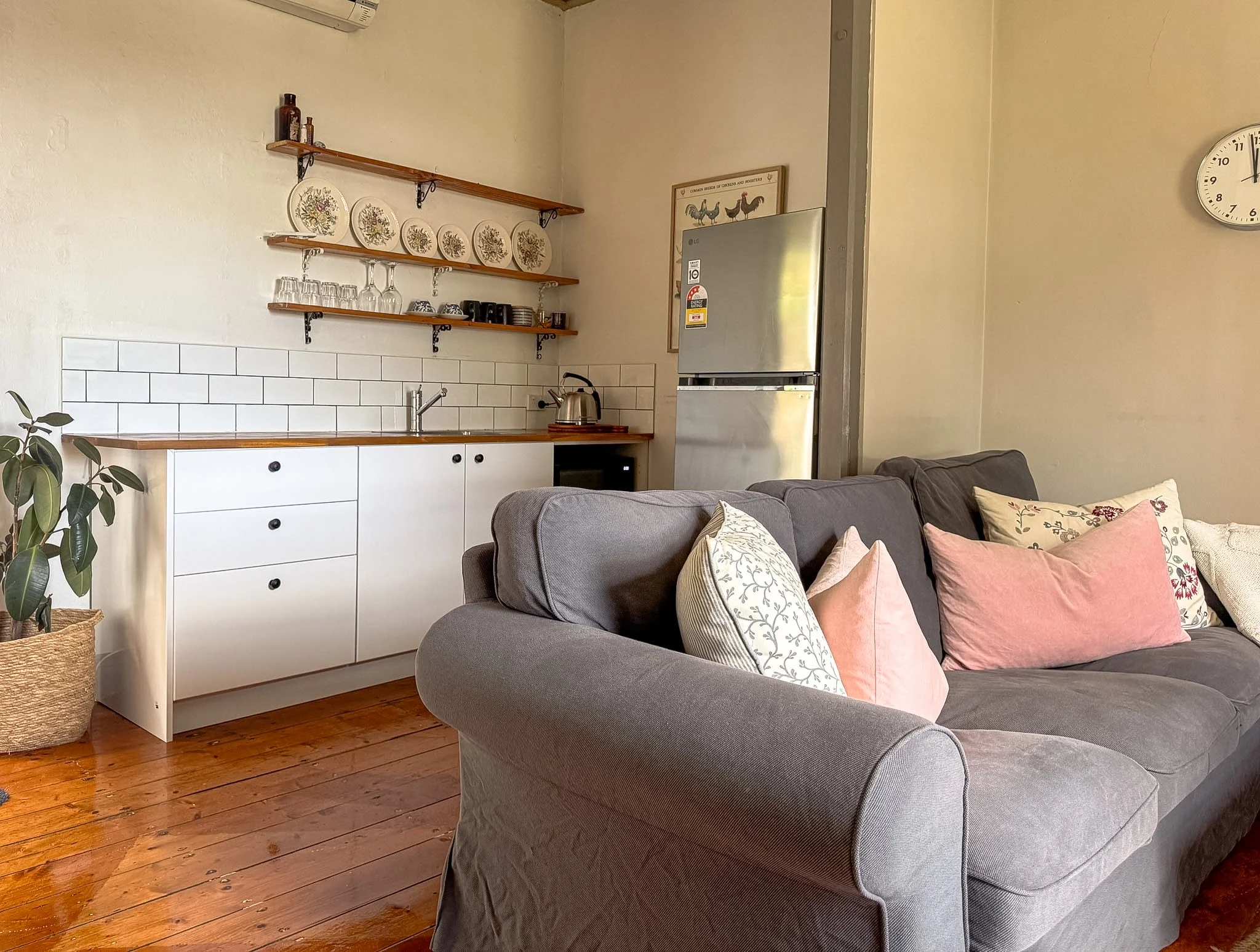 The Stone Cottage is a charming, character-filled retreat attached to the original 1855 Country House, with private access and a sunny courtyard. Featuring a separate bedroom with a queen bed, an open-plan kitchen and lounge, and a spa bath, it’s a cosy place to slow down and unwind. As the cottage sits at the front of the property, some road noise may be heard, though guests continue to love its warmth, charm, and relaxed country feel